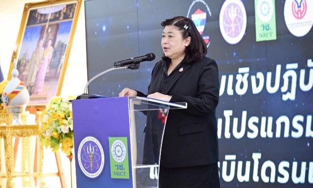 ดร.วิภารัตน์ ดีอ่อง ผู้อำนวยการสำนักงานการวิจัยแห่งชาติ กล่าวว่า วช. ให้ความสำคัญกับการพัฒนาทรัพยากรมนุษย์ด้านวิทยาศาสตร์ วิจัย และนวัตกรรม โดยการจัดอบรมถ่ายทอดองค์ความรู้ด้านการเขียนโปรแกรมออกแบบแผนการบินโดรนแปรอักษร เป็นกระบวนการบูรณาการองค์ความรู้ด้านวิศวกรรม การเขียนโปรแกรม คณิตศาสตร์ การวางแผนเชิงระบบ และความปลอดภัย เพื่อยกระดับทักษะผู้ปฏิบัติสู่การประยุกต์ใช้เทคโนโลยีอย่างมีประสิทธิภาพ และงานสร้างสรรค์ พร้อมทั้งส่งเสริมการต่อยอดสู่การพัฒนางานวิจัยและนวัตกรรมที่ก่อให้เกิดประโยชน์ต่อสังคมและประเทศ
