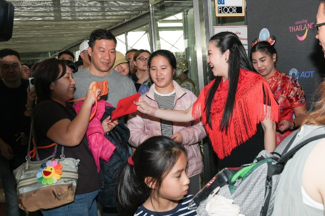 ททท. มอบถุงส้มนำโชคบรรจุ “ส้มสายน้ำผึ้งไทย” สื่อความหมายแห่งความสดใส ความมั่งคั่ง และความเป็นสิริมงคล โดยจำนวนส้มแทน 4 ฤดู เปรียบเสมือนคำอวยพรให้โชคดีมีชัยตลอดทั้งปี พร้อมบัตรของขวัญและของที่ระลึกพิเศษแก่ผู้โดยสารสายการบินไทย เที่ยวบิน TG 663 จากนครเซี่ยงไฮ้ ซึ่งมีอัตราบรรทุกผู้โดยสาร (Load Factor) สูงถึง 95% สะท้อนความเชื่อมั่นและความต้องการเดินทางท่องเที่ยวประเทศไทยที่เพิ่มขึ้นอย่างชัดเจน
