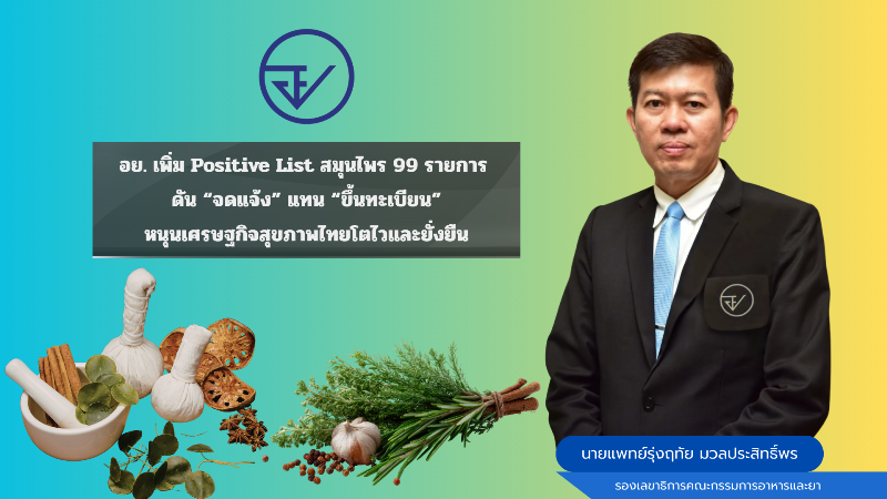 อย. เพิ่ม Positive List สมุนไพร 99 รายการ ดัน “จดแจ้ง” แทน “ขึ้นทะเบียน” หนุนเศรษฐกิจสุขภาพไทยโตไวและยั่งยืน