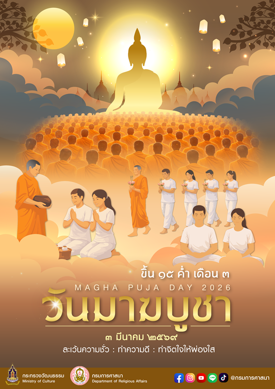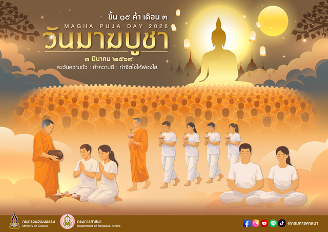 กระทรวงวัฒนธรรม โดยกรมการศาสนา ได้กำหนดจัดกิจกรรมส่งเสริมพระพุทธศาสนา เนื่องในเทศกาลวันมาฆบูชา พุทธศักราช 2569 ระหว่างวันที่ 25 กุมภาพันธ์ ถึง 3 มีนาคม 2569 ทั้งในส่วนกลางและส่วนภูมิภาคทั่วประเทศ เพื่อเปิดโอกาสให้พุทธศาสนิกชนได้น้อมรำลึกถึงพระรัตนตรัย และถวายเป็นพุทธบูชาอย่างพร้อมเพรียงกัน