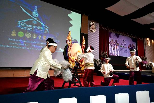 วันพฤหัสบดีที่ 19 กุมภาพันธ์ 2569 เวลา 10.00 น. นางยุถิกา อิศรางกูร ณ อยุธยา อธิบดีกรมส่งเสริมวัฒนธรรม เป็นประธานในพิธีเปิดกิจกรรมถ่ายทอดงานศิลป์กับศิลปินแห่งชาติ ศิลปินแห่งชาติสัญจร โดยมีรองศาสตราจารย์ ดร.สุภาวิณี สัตยาภรณ์ อธิการบดีมหาวิทยาลัยราชภัฏอุตรดิตถ์กล่าวต้อนรับ และมี นางสาวชริดา สังข์ทอง เลขานุการกรม รักษาราชการแทนรองอธิบดีกรมส่งเสริมวัฒนธรรม นางศรัญญา เมนะพันธุ์ ผู้อำนวยการส่วนงบประมาณกระทรวงวัฒนธรรม 1 คณะศิลปินแห่งชาติ จำนวน 15 ท่าน นางมาดา กระดังงา ผู้อำนวยการหออัครศิลปิน นายนิรชัย ศรีใจ ผู้อำนวยการกลุ่มแผนงานและงบประมาณ กรมส่งเสริมวัฒนธรรม นางสาวอมรวรรณ ตรีเนตร ผู้อำนวยการกลุ่มส่งเสริมศาสนา ศิลปะและวัฒนธรรม (ผู้แทนวัฒนธรรมจังหวัดอุตรดิตถ์) คณะวิทยากร คณะผู้บริหารมหาวิทยาลัยราชภัฏอุตรดิตถ์ คณะผู้บริหารกรมส่งเสริมวัฒนธรรม ข้าราชการ เจ้าหน้าที่กรมส่งเสริมวัฒนธรรม นักเรียน นักศึกษาและสื่อมวลชน เข้าร่วมในพิธี ณ มหาวิทยาลัยราชภัฏอุตรดิตถ์ จังหวัดอุตรดิตถ์