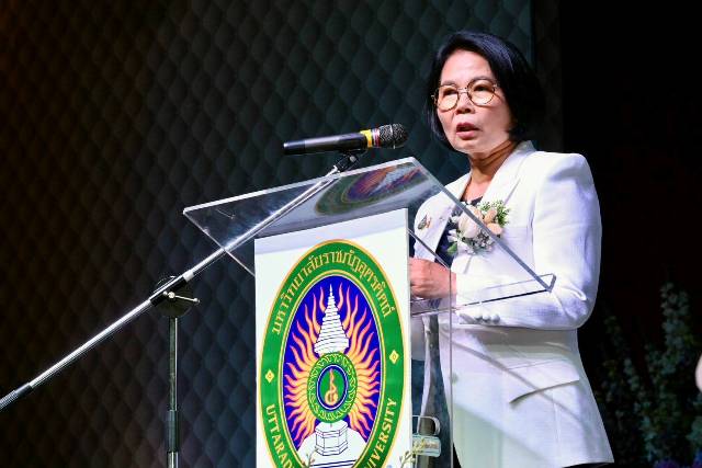 อธ. สวธ. กล่าวต่อว่า กิจกรรมในครั้งนี้ ท่านศิลปินแห่งชาติได้กรุณาอุทิศตนและเสียสละเวลาอันมีค่ามาร่วมถ่ายทอดความรู้ ประสบการณ์ และเทคนิควิธีการในการสร้างสรรค์ผลงาน ซึ่งล้วนเป็นทุนทางวัฒนธรรมที่ท่านสั่งสมมาทั้งชีวิต เพื่อเสริมสร้างศักยภาพและจุดประกายความคิดสร้างสรรค์ ให้แก่นักเรียน นักศึกษา ครู อาจารย์ และศิลปินรุ่นใหม่ ผู้ที่เป็นกำลังสำคัญในการสืบทอดและรักษามรดกทางวัฒนธรรมของชาติต่อไปในภายภาคหน้า ช่วยสร้างแรงบันดาลใจในการพัฒนาทักษะความคิดสร้างสรรค์ไปสู่การพัฒนานวัตกรรมทางวัฒนธรรม ที่จะสามารถต่อยอดไปสู่การขับเคลื่อนเศรษฐกิจสร้างสรรค์ของประเทศ ให้เติบโตควบคู่กับการธำรงรักษาอัตลักษณ์และคุณค่าทางวัฒนธรรมไว้อย่างยั่งยืน นอกจากนี้ กิจกรรมที่จัดขึ้นยังแสดงให้เห็นถึงความร่วมมืออันเข้มแข็ง ระหว่างกรมส่งเสริมวัฒนธรรม กระทรวงวัฒนธรรมกับมหาวิทยาลัยราชภัฏอุตรดิตถ์ รวมถึงเครือข่ายสถาบันการศึกษาและหน่วยงานที่เกี่ยวข้อง ซึ่งมีบทบาทสำคัญในการสนับสนุนและขับเคลื่อนให้เกิดพื้นที่การเรียนรู้ทางศิลปวัฒนธรรมในระดับท้องถิ่น อันจะนำไปสู่การสืบสาน พัฒนา และต่อยอดมรดกภูมิปัญญาอันล้ำค่าของศิลปินแห่งชาติทั้ง 3 สาขา เป็นการเจริญรอยตามเบื้องพระยุคลบาทของพระบาทสมเด็จพระบรมชนกาธิเบศร มหาภูมิพลอดุลยเดชมหาราช บรมนาถบพิตร ในฐานะอัครศิลปิน ผู้ทรงริเริ่ม สร้างสรรค์ และทรงคุณูปการอย่างยิ่งต่องานศิลปวัฒนธรรมของชาติ และยังเป็นการสืบสานพระราชปณิธานของสมเด็จพระนางเจ้าสิริกิติ์ พระบรมราชินีนาถ พระบรมราชชนนีพันปีหลวง ในฐานะอัคราภิรักษศิลปิน ผู้ที่ทรงอุปถัมภ์ ค้ำจุน และปกปักรักษามรดกศิลปวัฒนธรรมไทยให้คงอยู่สืบไป อันเป็นพระมหากรุณาธิคุณที่พสกนิกรชาวไทยต่างสำนึกในพระมหากรุณาธิคุณอย่างหาที่สุดมิได้