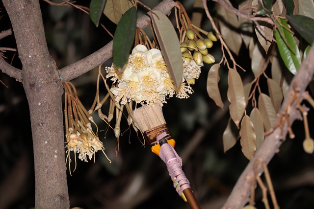 นางอัญชลี สุวจิตตานนท์ อธิบดีกรมส่งเสริมการเกษตร กล่าวว่า สถานการณ์ทุเรียนนนท์ ปัจจุบันมีพื้นที่ปลูกทุเรียนทั้งหมด 2,138.94 ไร่ เกษตรกร 1,277 ครัวเรือน ให้ผลผลิตรวมประมาณ 41.69 ตันต่อปี คิดเป็นมูลค่ากว่า 65 ล้านบาทต่อปี ซึ่งช่วงนี้ถือเป็นช่วงสำคัญสำหรับเกษตรกรชาวสวนทุเรียนนนท์ เนื่องจากทุเรียนกำลังเข้าสู่ช่วงระยะติดดอก มีผลต่อการกำหนดคุณภาพและผลผลิต เกษตรกรจึงมีการปัดดอกทุเรียน ซึ่งเป็นภูมิปัญญาดั้งเดิมของเกษตรกรชาวสวนทุเรียนนนท์ในการช่วยผสมเกสรทุเรียนด้วยมือ โดยใช้ไม้กวาดหรือพู่กันปัดเกสรตัวผู้ให้หล่นลงบนดอกเกสรตัวเมีย วิธีนี้จะทำให้การผสมเกสรสมบูรณ์มากขึ้น เปอร์เซ็นต์การติดผลสูงขึ้น ส่งผลให้รูปทรงของผลทุเรียนสวยงาม ไม่บิดเบี้ยว มีพูมาก เป็นลักษณะเฉพาะของทุเรียนคุณภาพ ซึ่งภายหลังจากผสมเกสรแล้ว เกษตรกรจะบันทึกวันผสมเกสรไว้ทุกช่อ ทุกต้น เพื่อความแม่นยำในการตัดทุเรียน โดยปีนี้ผลผลิตทุเรียนนนท์จะเริ่มออกจำหน่ายตั้งแต่เดือนเมษายน 2569 เป็นต้นไป ใช้เวลา 90 – 120 วัน จากวันที่ทำการผสมเกสร เกษตรกรก็จะได้ทุเรียนสุกพอดี