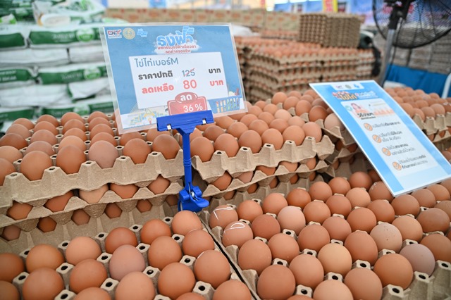 สำหรับสินค้าไฮไลท์ภายในงาน ได้แก่ ไข่ไก่เบอร์ M แผงละ 80 บาท น้ำมันปาล์มขวดละ 35 บาท น้ำตาลทรายกิโลกรัมละ 20 บาท และข้าวหอมมะลิถุง 5 กิโลกรัม ราคา 120 บาท รวมถึงหอมแดงจากเกษตรกรจังหวัดศรีสะเกษ จำหน่ายกิโลกรัมละ 40 บาท จากราคาตลาดทั่วไปกิโลกรัมละ 60 บาท และหอมหัวใหญ่เบอร์ 2–3 จากสหกรณ์ผู้ปลูกหอมหัวใหญ่แม่วาง จังหวัดเชียงใหม่ จำหน่ายกิโลกรัมละ 20 บาท จากราคาตลาดทั่วไปกิโลกรัมละ 30–50 บาท ซึ่งเป็นการเชื่อมโยงผลผลิตจากแหล่งผลิตโดยตรงสู่มือผู้บริโภค