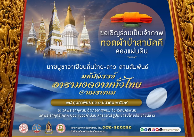 ศน. เตรียมจัดงาน มาฆบูชาอาเซียน ถิ่นไทย-ลาว ชูมิติศาสนาสานสายใยสองแผ่นดิน สานสัมพันธ์มหัศจรรย์อาราม งดงามทั่วไทย @ นครพนม