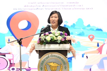 นางดรุณี สามใบ ผู้แทน Care giver เทศบาลตำบลหนองหอย กล่าวขอบคุณ วช. คณะนักวิจัย และทุกภาคีเครือข่าย ที่ได้พัฒนาองค์ความรู้ เทคโนโลยี และนวัตกรรมเพื่อสนับสนุนการทำงานของผู้ดูแลผู้สูงอายุ การได้เรียนรู้และใช้เครื่องมือ เช่น แอปพลิเคชัน Caregiver 4.0 ช่วยให้การดูแลผู้สูงอายุมีความเป็นระบบ มั่นใจ และปลอดภัยมากยิ่งขึ้น และพร้อมที่จะนำความรู้ที่ได้รับไปพัฒนาการดูแลผู้สูงอายุในชุมชนให้ดียิ่งขึ้น เพื่อคุณภาพชีวิตที่ดีและยั่งยืนของผู้สูงอายุในชุมชน