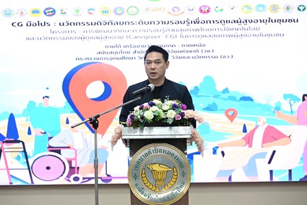ดร.วิภารัตน์ ดีอ่อง ผู้อำนวยการสำนักงานการวิจัยแห่งชาติ กล่าวว่า วช. มีพันธกิจสำคัญในการขับเคลื่อนงานวิจัยและนวัตกรรมให้ตอบโจทย์ความต้องการของสังคม โดยเฉพาะในบริบทที่ประเทศไทยได้ก้าวเข้าสู่สังคมผู้สูงอายุอย่างสมบูรณ์ การพัฒนาระบบการดูแลระยะยาวและการยกระดับศักยภาพผู้ดูแลจึงเป็นภารกิจเร่งด่วน กิจกรรม “CG มือโปร” ในวันนี้นับเป็นตัวอย่างของการถ่ายทอดองค์ความรู้จากงานวิจัยสู่การปฏิบัติจริง เพื่อยกระดับมาตรฐานการดูแลผู้สูงอายุให้มีคุณภาพและปลอดภัย โดย วช. พร้อมสนับสนุนงานวิจัยและนวัตกรรมที่สามารถช่วยยกระดับคุณภาพชีวิตประชาชน และสร้างระบบการดูแลที่เข้มแข็ง ยั่งยืน และขยายผลได้ในระดับประเทศ