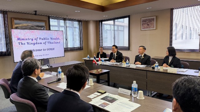 รัฐมนตรีว่าการกระทรวงสาธารณสุข หารือ ผู้บริหารมหาวิทยาลัย UOEH ฟูกูโอกะ ประเทศญี่ปุ่น สร้างความร่วมมือทางวิชาการ ยกระดับระบบอาชีวอนามัยของประเทศไทย สร้างความปลอดภัยและสุขภาวะที่ดีให้แรงงานไทย หนุนเศรษฐกิจของประเทศให้เติบโตอย่างมั่นคงและยั่งยืน เผย สาธารณสุขไทยมีแผนยกระดับโรงพยาบาลเฉลิมพระเกียรติสมเด็จพระเทพรัตนราชสุดาฯ สยามบรมราชกุมารี ระยอง ให้เป็นศูนย์กลางการจัดบริการสาธารณสุขครบวงจร ดูแลแรงงานในนิคมอุตสาหกรรมอย่างเป็นระบบ และพัฒนาพื้นที่ต้นแบบด้านการป้องกันโรคที่เกิดจากความร้อนในโรงงาน