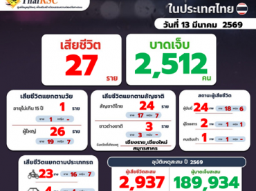 สถานการณ์อุบัติเหตุทางถนนในประเทศไทย วันที่ 13 มี.ค.69