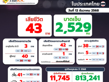สถานการณ์อุบัติเหตุทางถนนในประเทศไทย วันที่ 12 ธ.ค.68