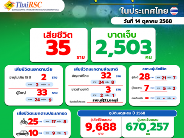 สถานการณ์อุบัติเหตุทางถนนในประเทศไทย วันที่ 14 ตุลาคม 2 […]