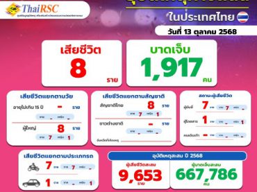 สถานการณ์อุบัติเหตุทางถนนในประเทศไทย วันที่ 14 ตุลาคม 2 […]
