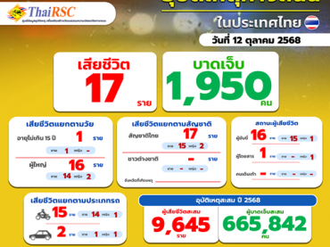 สถานการณ์อุบัติเหตุทางถนนในประเทศไทย วันที่ 12 ตุลาคม 2 […]