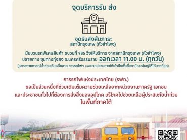 การรถไฟฯ เคลื่อนขบวนตั้ง “ศูนย์รวมน้ำใจ เพื่อบรรเทาภัยน้ำท่วมภาคใต้” รับ-ส่ง สิ่งของช่วยเหลือ พร้อมเร่งลำเลียงสู่พื้นที่ประสบภัย ควบคู่จัดตั้ง “โรงครัวสนาม” ดูแลผู้ที่ได้รับผลกระทบอุทกภัยในพื้นที่ภาคใต้