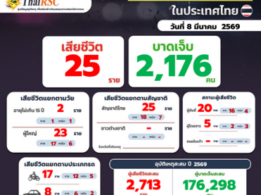 สถานการณ์อุบัติเหตุทางถนนในประเทศไทย วันที่ 8 มี.ค.69