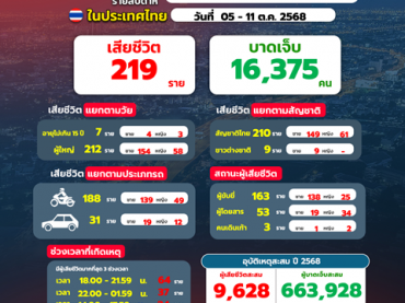 สถานการณ์อุบัติเหตุทางถนนในประเทศไทย วันที่ 11 ตุลาคม 2 […]