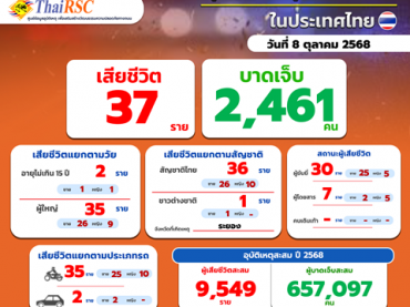 สถานการณ์อุบัติเหตุทางถนนในประเทศไทย วันที่ 8 ตุลาคม 25 […]