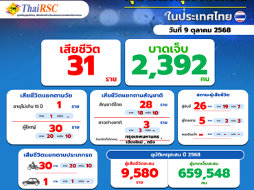 สถานการณ์อุบัติเหตุทางถนนในประเทศไทย วันที่ 9 ตุลาคม 25 […]