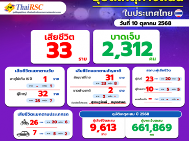 สถานการณ์อุบัติเหตุทางถนนในประเทศไทย วันที่ 10 ตุลาคม 2 […]