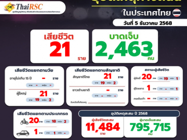 สถานการณ์อุบัติเหตุทางถนนในประเทศไทย วันที่ 5 ธ.ค.68