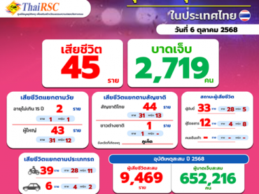 สถานการณ์อุบัติเหตุทางถนนในประเทศไทย วันที่ 6 ตุลาคม 25 […]