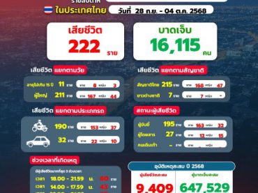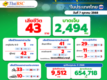 สถานการณ์อุบัติเหตุทางถนนในประเทศไทย วันที่ 7 ตุลาคม 25 […]