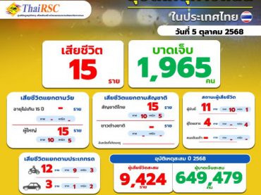 สถานการณ์อุบัติเหตุทางถนนในประเทศไทย วันที่ 5 ตุลาคม 25 […]