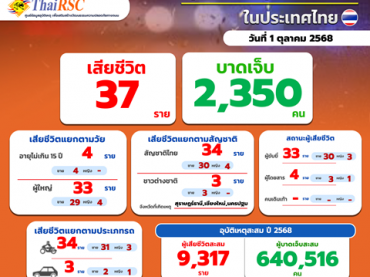สถานการณ์อุบัติเหตุทางถนนในประเทศไทย วันที่ 1 ตุลาคม 25 […]