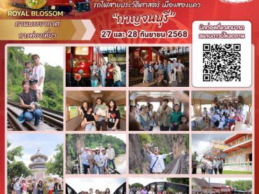ภาพที่ระลึกนักท่องเที่ยวที่เดินทางไปกับขบวนรถ Royal Blossom ทริป BLOSSOM JOURNEY : TRAIN To The Past รถไฟสายประวัติศาสตร์ เมืองสองแคว “กาญจนบุรี” วันที่ 27 – 28 ก.ย.68
