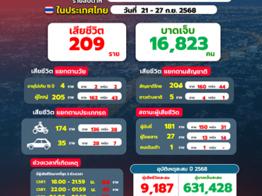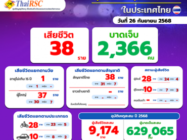 สถานการณ์อุบัติเหตุทางถนนในประเทศไทย วันที่ 26 กันยายน […]