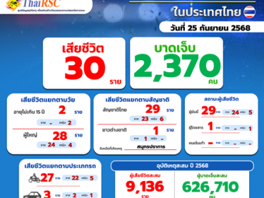 สถานการณ์อุบัติเหตุทางถนนในประเทศไทย วันที่ 25 กันยายน […]