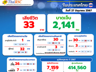 สถานการณ์อุบัติเหตุทางถนนในประเทศไทย วันที่ 27 มิถุนายน […]