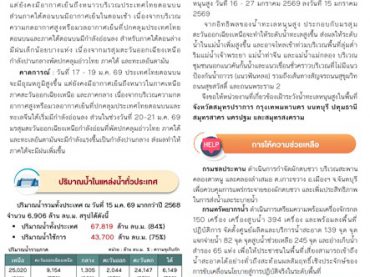 สรุปสถานการณ์น้ำภาพรวมของประเทศ วันที่ 18 ม.ค. 69 เวลา 7.00 น.