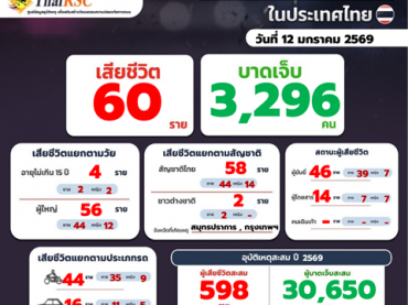 สถานการณ์อุบัติเหตุทางถนนในประเทศไทย วันที่ 12 ม.ค. 69