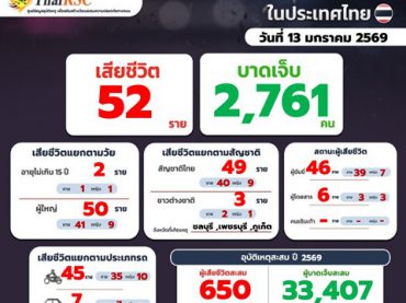 สถานการณ์อุบัติเหตุทางถนนในประเทศไทย วันที่ 13 ม.ค. 69