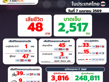 สถานการณ์อุบัติเหตุทางถนนในประเทศไทย วันที่ 7 เม.ย.69
