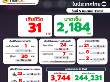 สถานการณ์อุบัติเหตุทางถนนในประเทศไทย วันที่ 5 เม.ย.69