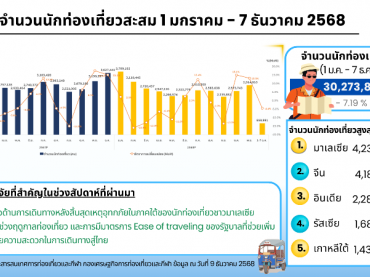 สถานการณ์การท่องเที่ยวระหว่างวันที่ 1 – 7 ธันวาคม 2568