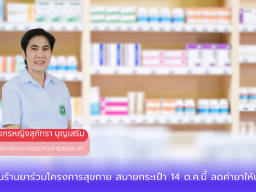 อย. ชวนร้านยาร่วมโครงการสุขกาย สบายกระเป๋า 14 ต.ค.นี้ ลดค่ายาให้ประชาชน