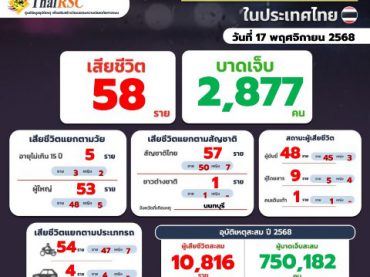 สถานการณ์อุบัติเหตุทางถนนในประเทศไทย วันที่ 17 พ.ย.68