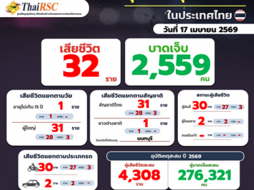 สถานการณ์อุบัติเหตุทางถนนในประเทศไทย วันที่ 10 เม.ย.69