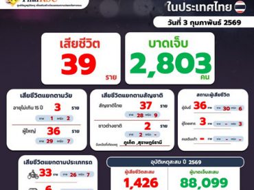 สถานการณ์อุบัติเหตุทางถนนในประเทศไทย วันที่ 3 ก.พ. 69