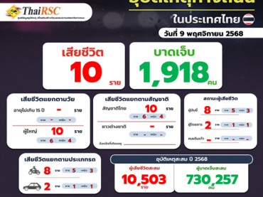 สถานการณ์อุบัติเหตุทางถนนในประเทศไทย วันที่ 9 พฤศจิกายน […]