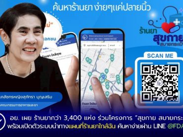 อย. เผย ร้านยากว่า 3,400 แห่ง ร่วมโครงการ “สุขกาย สบายกระเป๋า” พร้อมเปิดตัวระบบนำทาง “แผนที่ร้านยาใกล้ฉัน” ค้นหาง่าย ผ่าน LINE @FDAThai