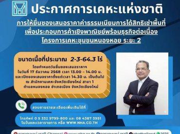 การเคหะแห่งชาติเปิดยื่นข้อเสนอสิทธิเช่าที่ดินโครงการเคหะชุมชนหนองหอย ระยะ 2 ทำเลศักยภาพใจกลางเมือง