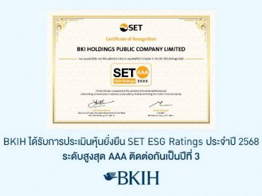 บริษัท บีเคไอ โฮลดิ้งส์ จำกัด (มหาชน) หรือ BKIH ได้รับผ […]