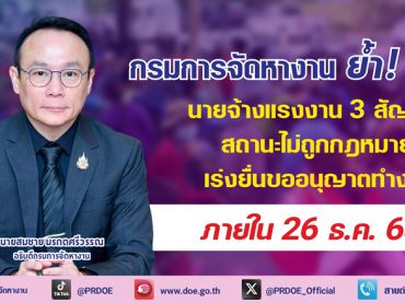 เมื่อวันที่ 19 ธันวาคม 2568 กระทรวงแรงงาน โดยสำนักงานปล […]