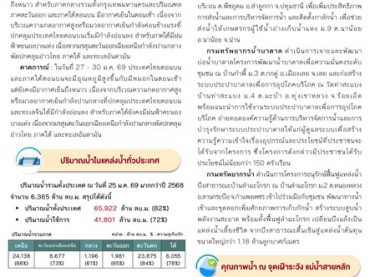 สรุปสถานการณ์น้ำภาพรวมของประเทศ วันที่ 26 ม.ค. 69 เวลา 7.00 น. 26 มกราคม 2026Thailandplusประชาสัมพันธ์