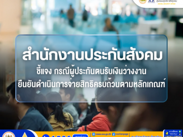 สำนักงานประกันสังคมชี้แจงกรณีผู้ประกันตนรับเงินว่างงาน ยืนยันดำเนินการจ่ายสิทธิครบถ้วนตามหลักเกณฑ์