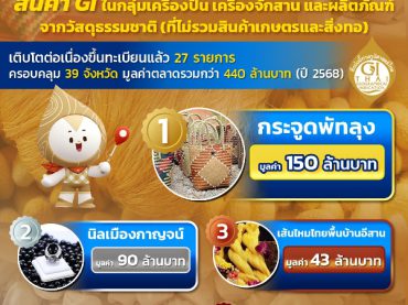 กรมทรัพย์สินทางปัญญา เปิดโผ GI ในกลุ่มเครื่องปั้น – จักสาน – ผลิตภัณฑ์จากวัสดุธรรมชาติ สร้างเม็ดเงินทะลุ 440 ล้านบาท ในปี 2568 ส่งต่ออัตลักษณ์ชุมชนระดับพรีเมียม ครองใจตลาดโลก 25 เมษายน 2026Thailandplusเศรษฐกิจ